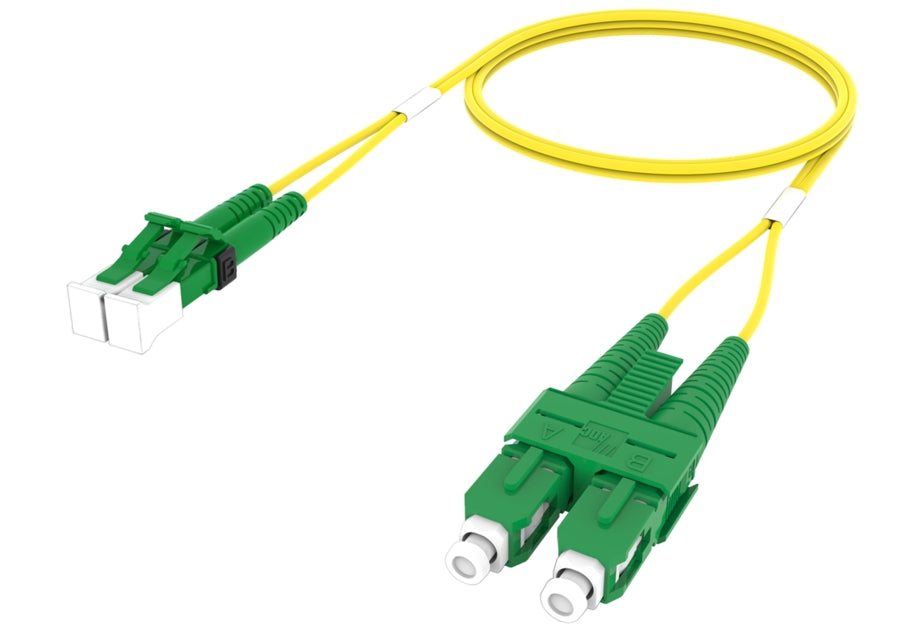 Fiber Optic Patch Cord, Duplex, Singlemode, LC/APC to SC/APC, yellow, 3 m
