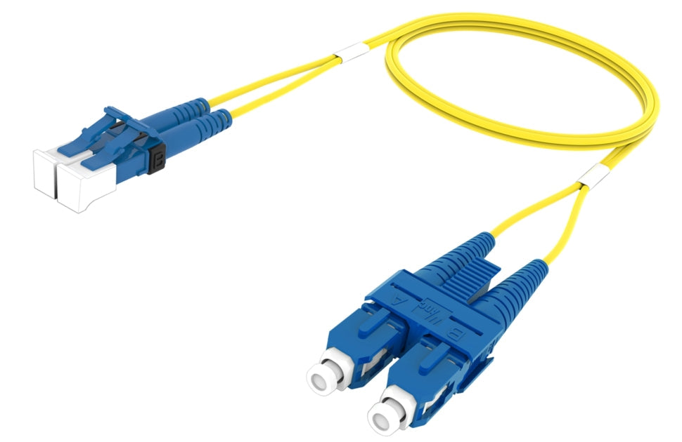 Fiber Optic Patch Cord, Duplex, Singlemode, LC/UPC to SC/UPC, yellow, 1 m