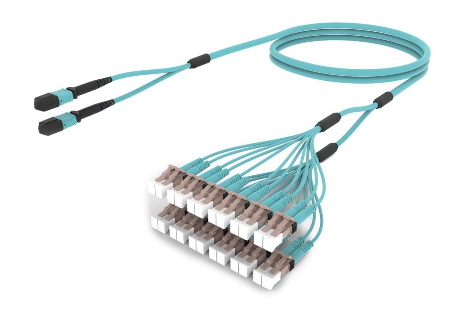 OM4 MPO (Unpinned) to LC/UPC, InstaPATCH® 360 Ruggedized Fanout Cable, 24-Fiber, Low Smoke Zero Halogen, 3, m, M - Aqua, S - 36 inch breakout (end A/end B), no gland, no pulling grip
